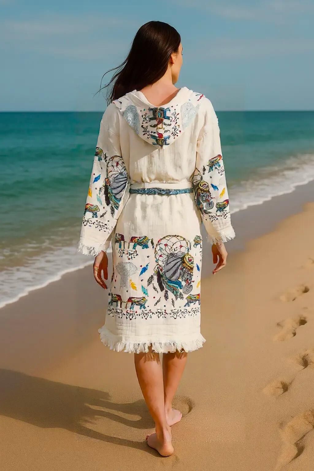 Plaj Giyim Pamuk Müslin Bornoz Kimono - Filler