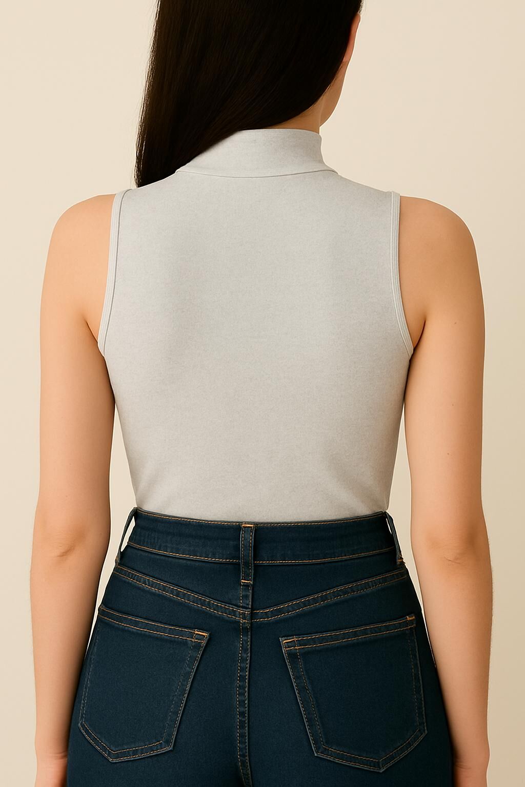 Yumuşak Modal Dokulu Pamuk Dokuma Dik Yaka Kolsuz Kadın Basic Body