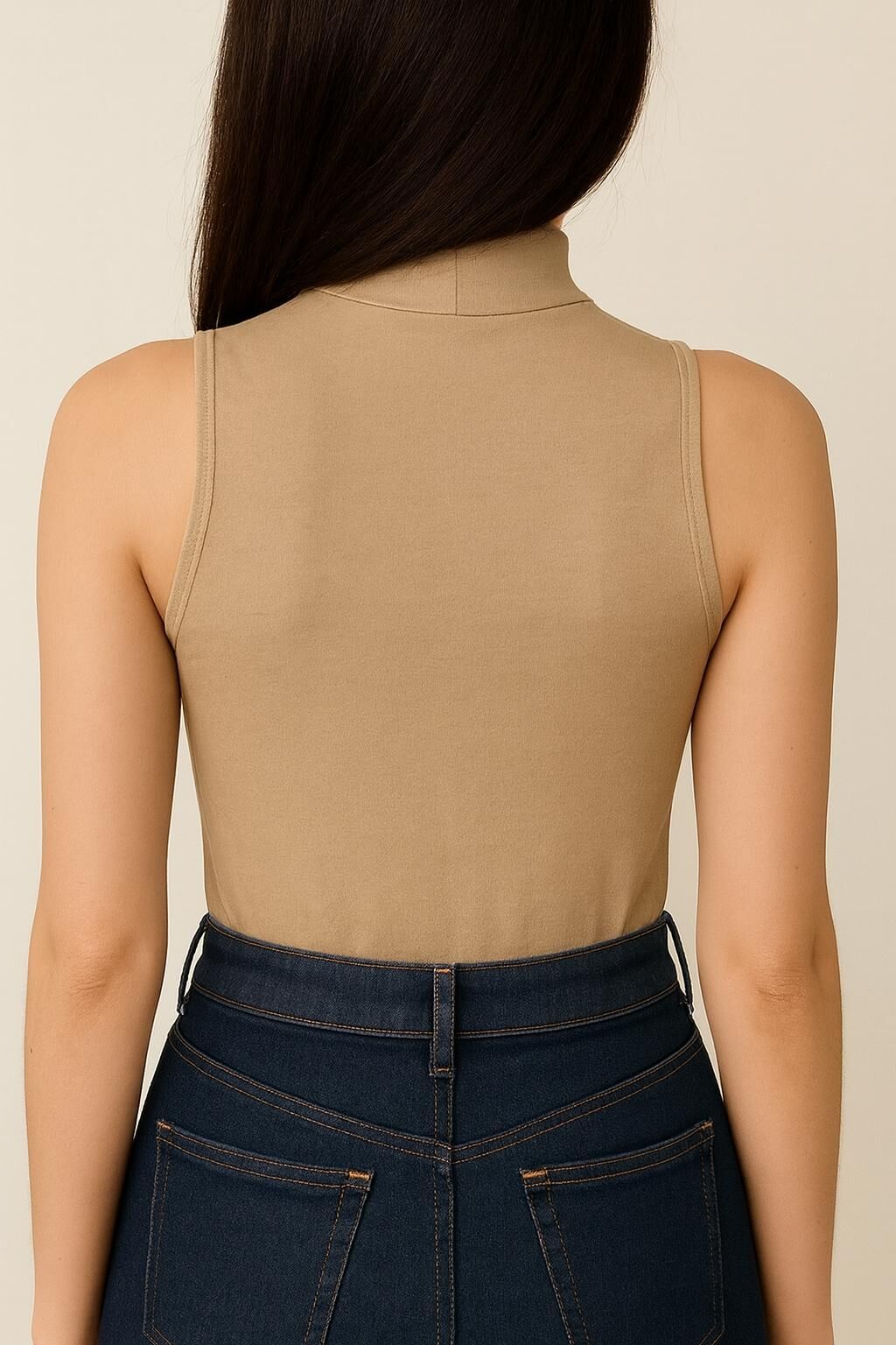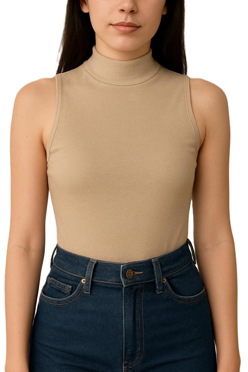 Yumuşak Modal Dokulu Pamuk Dokuma Dik Yaka Kolsuz Kadın Basic Body