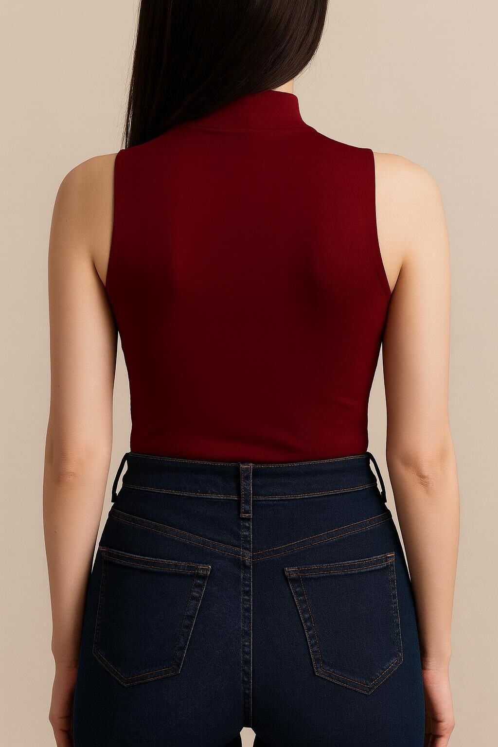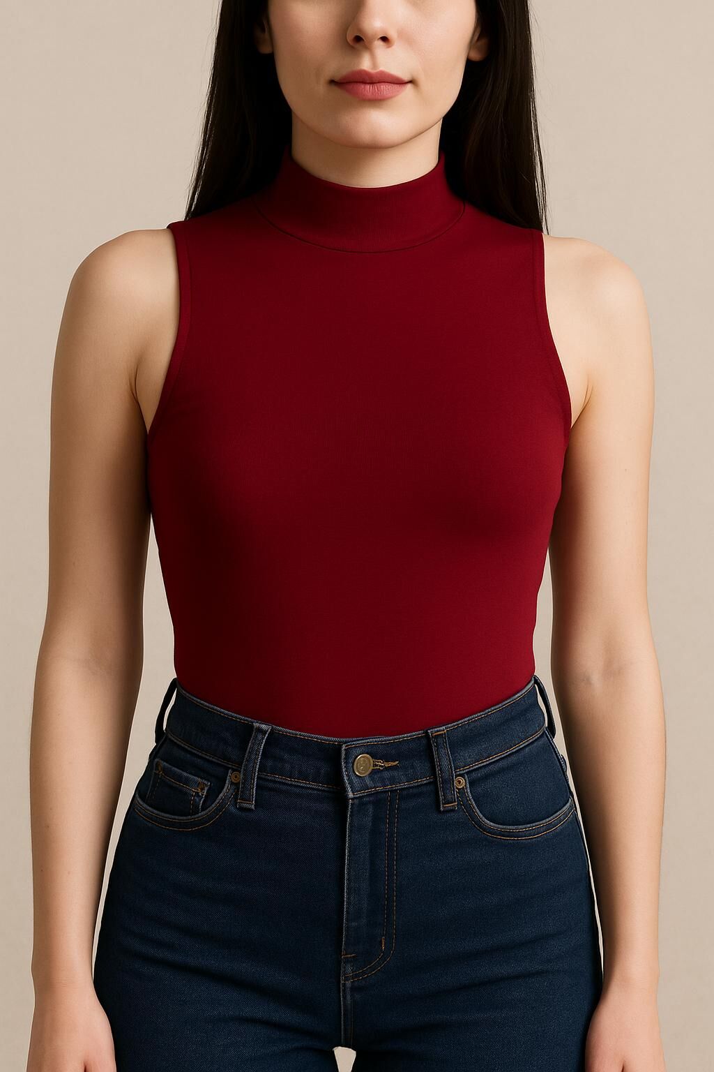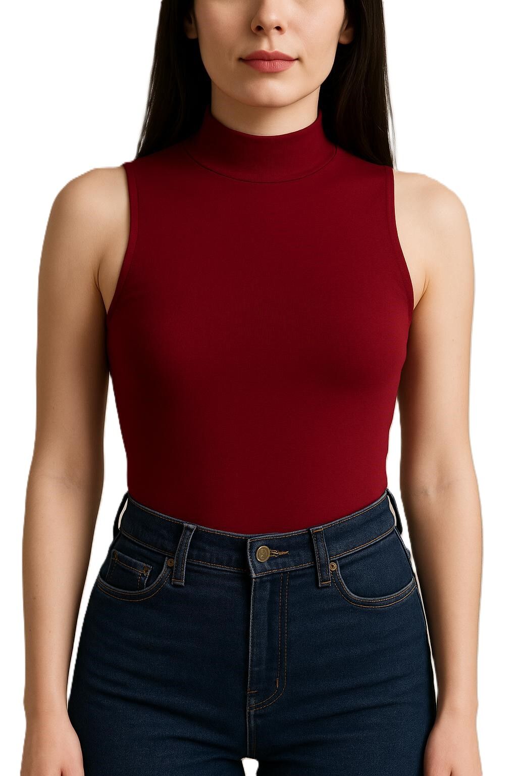 Yumuşak Modal Dokulu Pamuk Dokuma Dik Yaka Kolsuz Kadın Basic Body