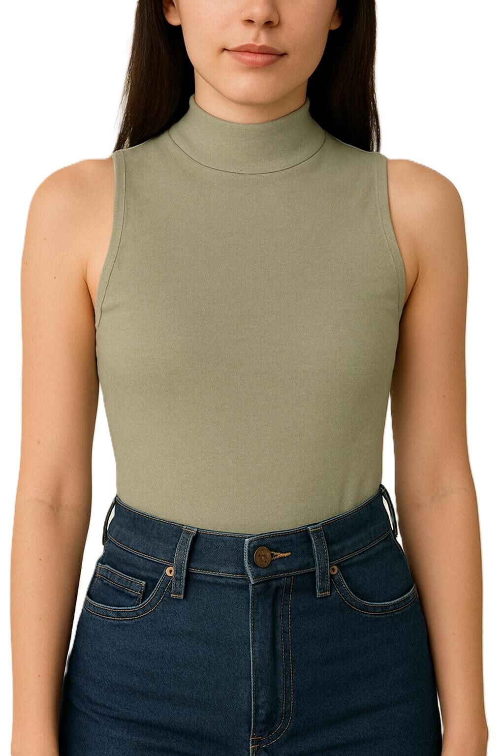 Yumuşak Modal Dokulu Pamuk Dokuma Dik Yaka Kolsuz Kadın Basic Body