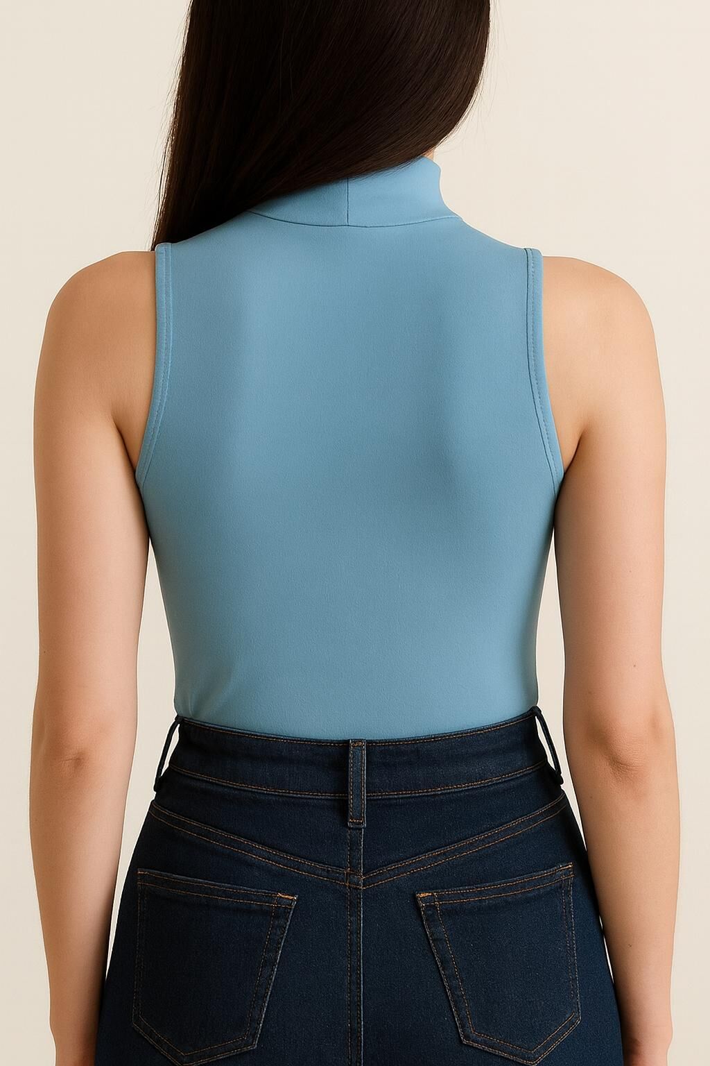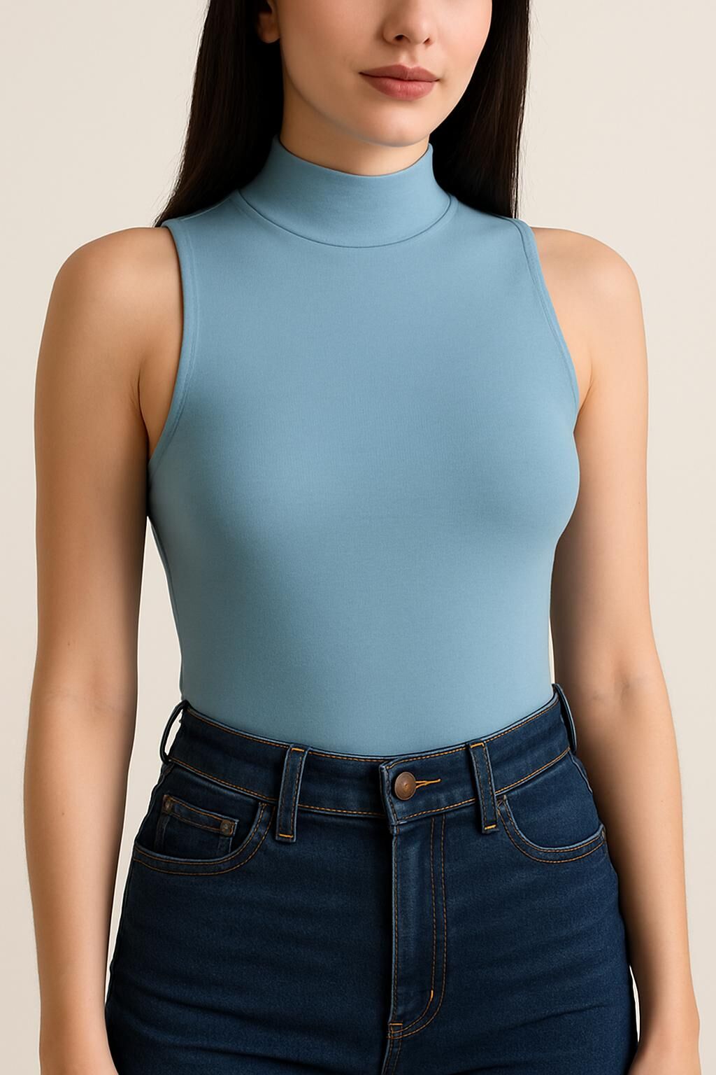 Yumuşak Modal Dokulu Pamuk Dokuma Dik Yaka Kolsuz Kadın Basic Body