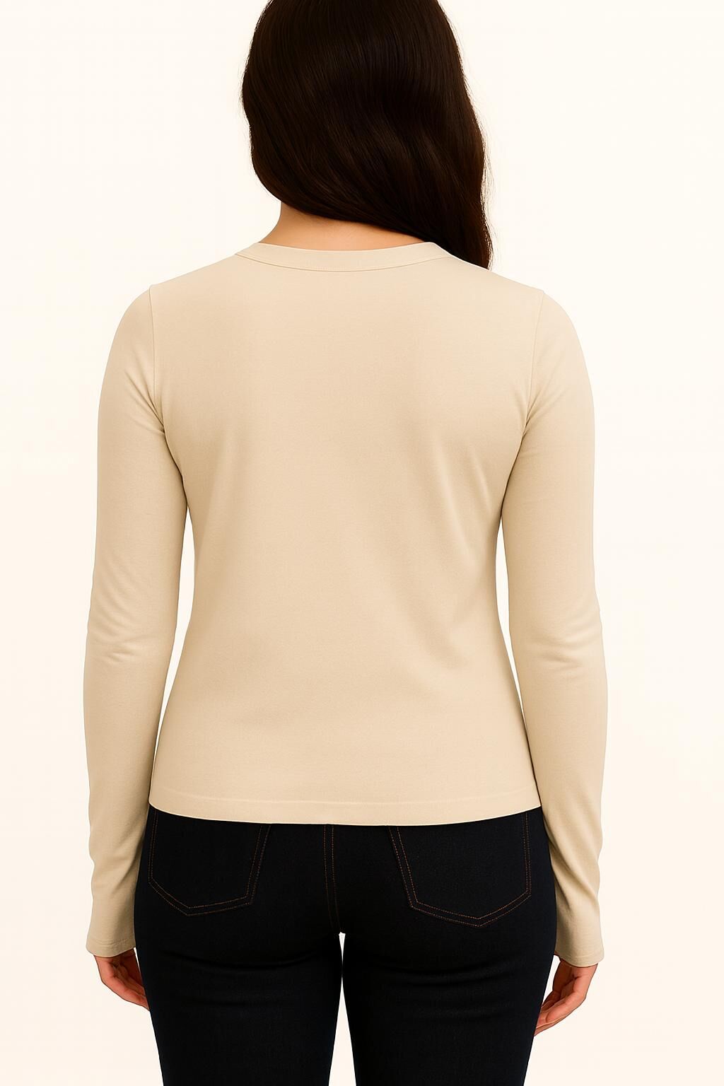 Yumuşak Modal Dokulu Pamuk Dokuma Uzun Kol Parmak Geçmeli Bisiklet Yaka Body – Basic Bluz