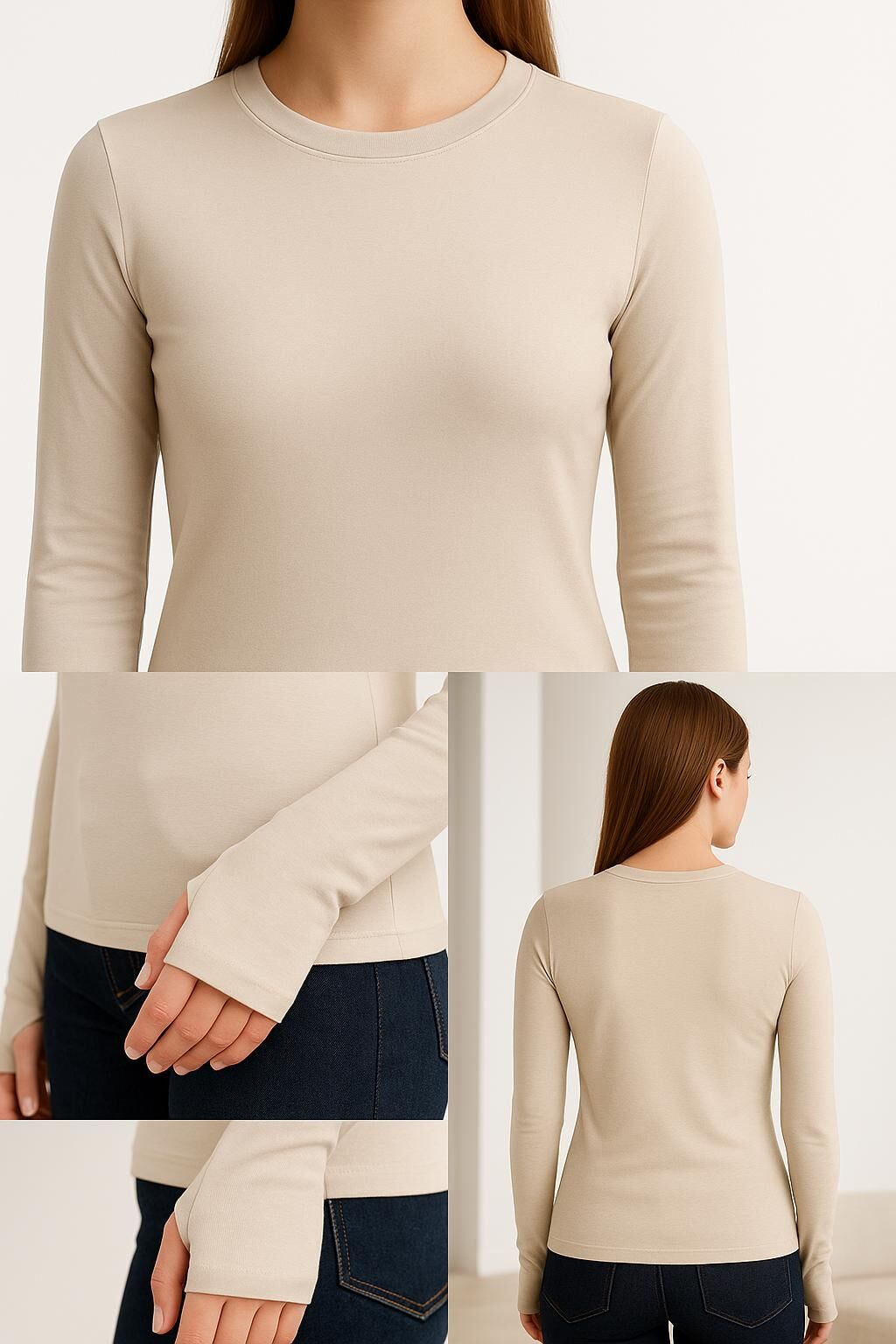Parmak geçmeli uzun kol tasarımı – fonksiyonel ve modern görünüm