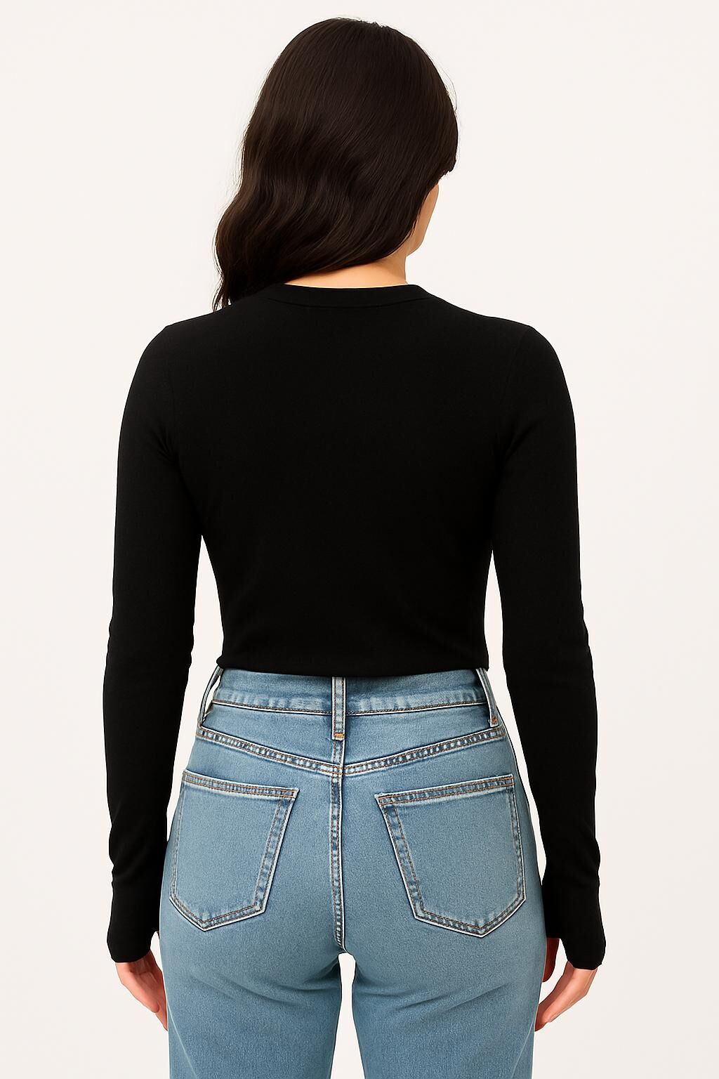 Yumuşak Modal Dokulu Pamuk Dokuma Uzun Kol Parmak Geçmeli Bisiklet Yaka Body – Basic Bluz