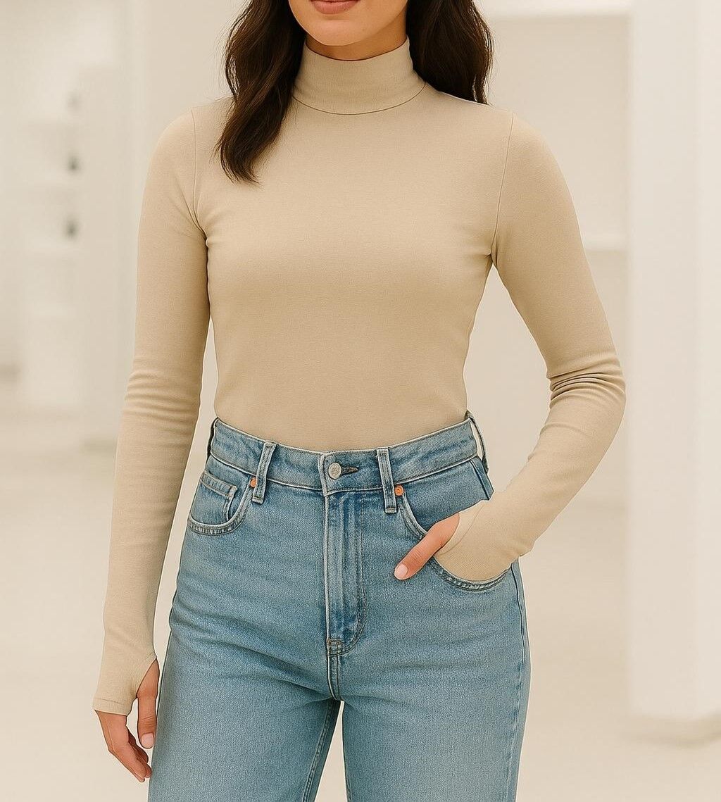 Parmak geçmeli uzun kol tasarımı – fonksiyonel ve modern görünüm