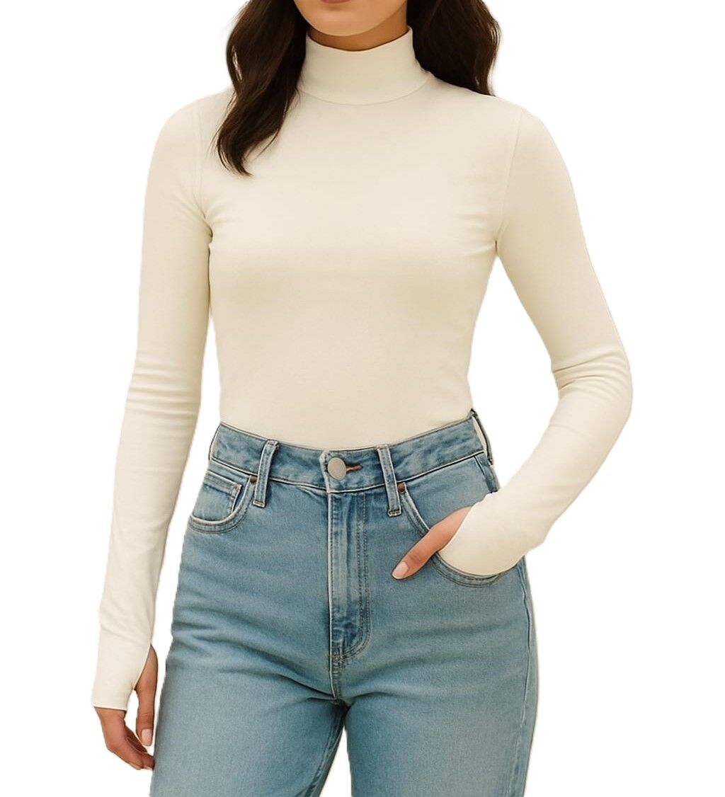 Yumuşak Modal Dokulu Pamuk Dokuma Uzun Kol Parmak Geçmeli Dik Yaka Body – Basic Bluz