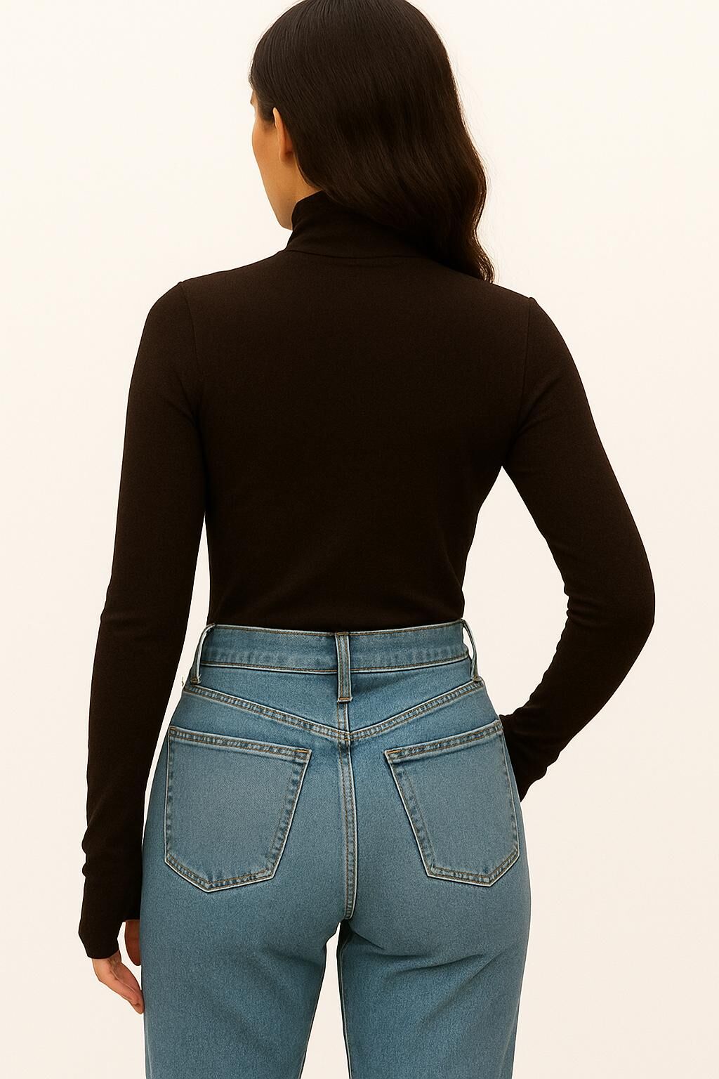 Yumuşak Modal Dokulu Pamuk Dokuma Uzun Kol Parmak Geçmeli Dik Yaka Body – Basic Bluz